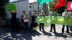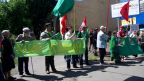 Елена Громова читает своё стихотворение в защиту Ливии в Москве перед офисом НАТО